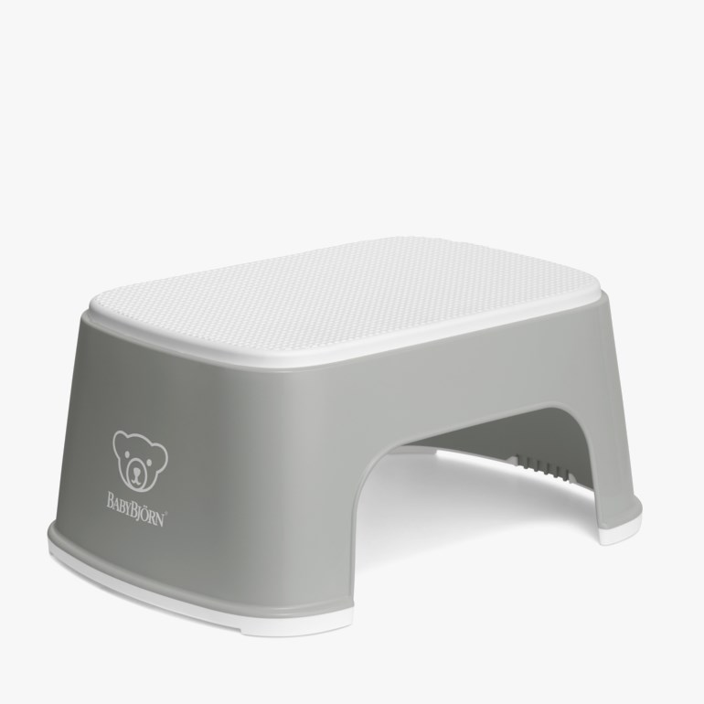 BabyBjörn skammel gir barna en trygg og stabil plattform for å nå opp til vasken eller toalettet. Perfekt for daglige aktiviteter som å vaske hender eller pusse tenner. Den sklisikre overflaten gir godt grep selv for våte føtter, mens brede gummilister på undersiden sikrer at skammelen står stødig på gulvet.