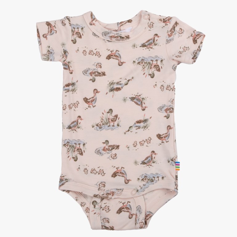 Kortermet body med trykknapper på den ene skulderen og mellom bena for enklere påkledning.
