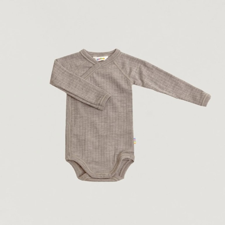 Body med lange ermer og omslagslukking for de minste. Trykk knapper mellom bena og sugerør over magen for enklere påkledning. Virkelig en myk, stretchy lett ullkvalitet med vertikalt ribbemønster. Strekkbarheten i kvaliteten gjør den behagelig å bruke inne. Ensfarget. Ren merinoull og Oeko-tex 100 etikett.