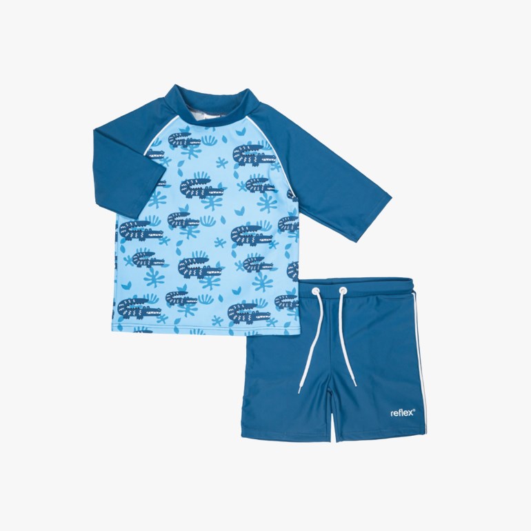 • Overdel med korte ermer og tilhørende badeshorts med snøring i livet. • Navnelapp i både bukse og overdel. • Blokkerer minst 98% av solens UVA- og UVB-stråling. • Solfilter UPF 50; beskyttelsesklassifisering EXCELLENT • Plagg med UPF solfilter og solbeskyttende egenskaper, er underlagt «PVU-forordningen» EU 2016/425 og er derfor både designet, produsert og testet ihht AS 4399:2020. • Str. 86-92 cm 18-24 mnd – 134-140 cm 9-10 år. • Materiale: 80% resirkulert polyamid, 20% elastan. • For å ivareta både plagget og miljøet så godt som mulig, anbefaler vi å minimere antall vask så mye man kan. Skyll plagget i rikelig med ferskvann og la det lufttørke i skyggen. Unngå å la det tørke direkte i sollys. Dette vil forlenge levetiden på plagget, minimere energibruk samt skåne miljøet for unødvendig utslipp og overforbruk.