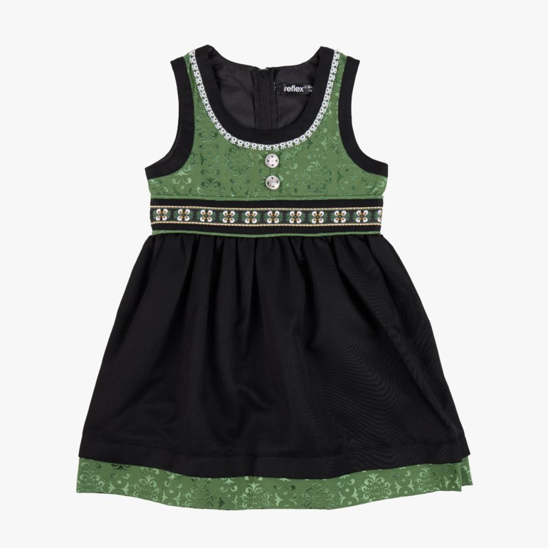 - Sort skjørt med grønn brokade, blondekant og pyntebånd.