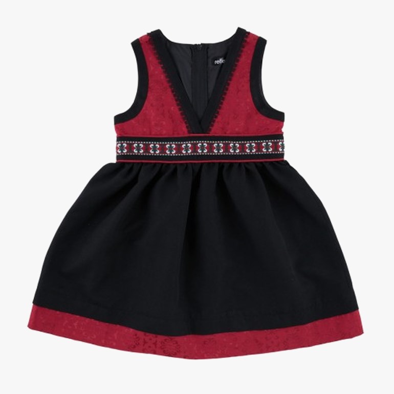 Klassisk og stilfull festdrakt til de minste jentene. Sort skjørt med rød brokade, blondekant og pyntebånd. Enkel å ta av og på med glidelåsåpning bak. Maihaugen-serien tilbyr body, skaut, forkle og hårbånd – alt tilpasset festdrakten - som kan kjøpes separat. Str 62 cm 3 mnd – 86 cm 12 mnd. Materiale: Skjørt: 51% bomull, 49% polyester, Brokade: 100% polyester, Lining: 100% polyester. Vaskeanvisning: Bør ikke vaskes. Renses ved behov. Vask gjerne av flekker med en klut og heng plagget til lufting når nødvendig.