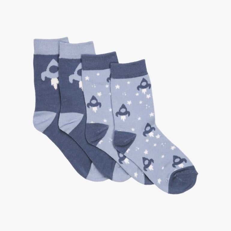 Ribbestrikk og innsydd elastikk rundt ankelen sørger for at sokkene sitter godt uten å stramme. Størrelsesmarkering på innsiden av skaftet gjør det enkelt å holde orden, og to-pakningen gir et praktisk tilskudd av sokker med varierte mønster og farger.