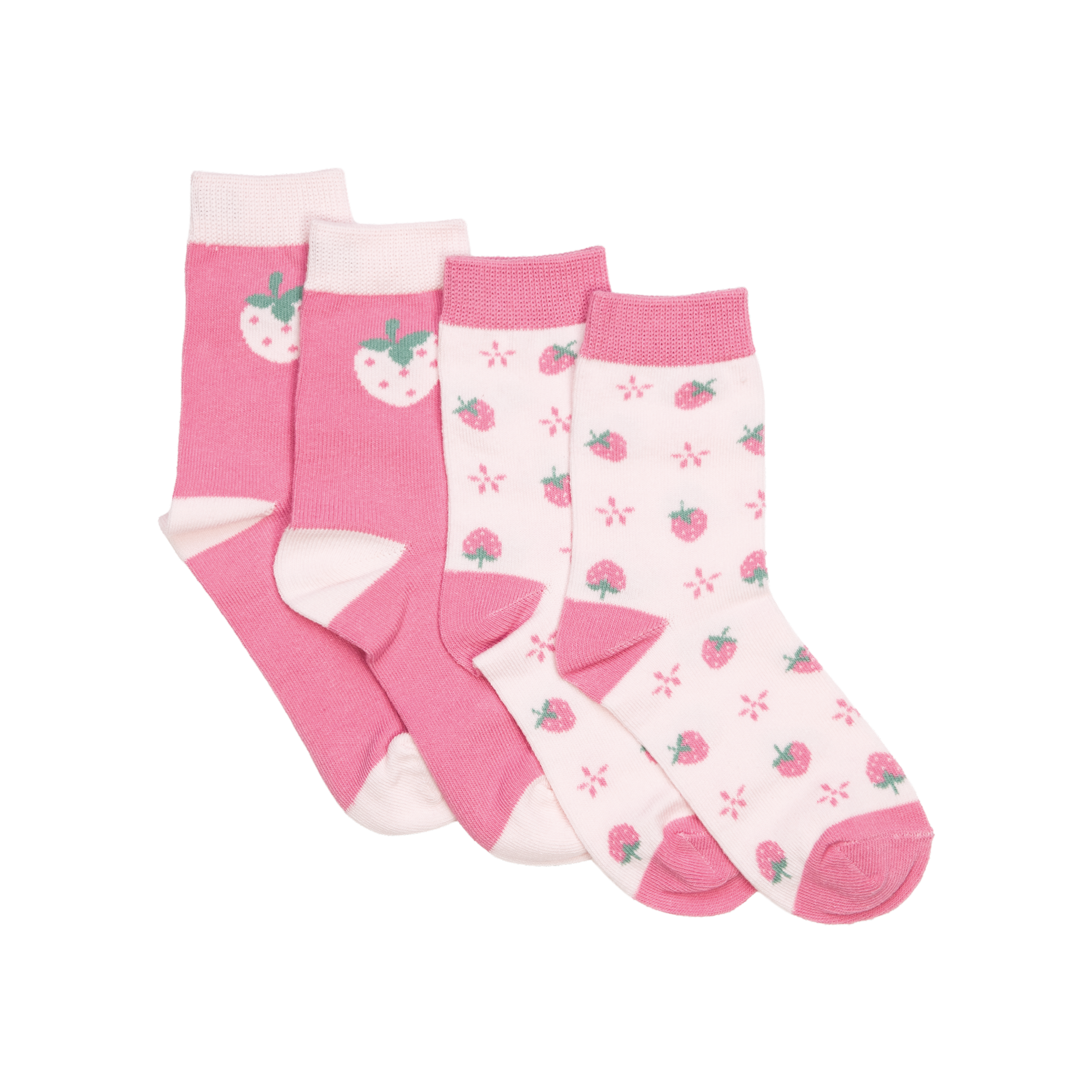 Ribbestrikk og innsydd elastikk rundt ankelen sørger for at sokkene sitter godt uten å stramme. Størrelsesmarkering på innsiden av skaftet gjør det enkelt å holde orden, og to-pakningen gir et praktisk tilskudd av sokker med varierte mønster og farger.