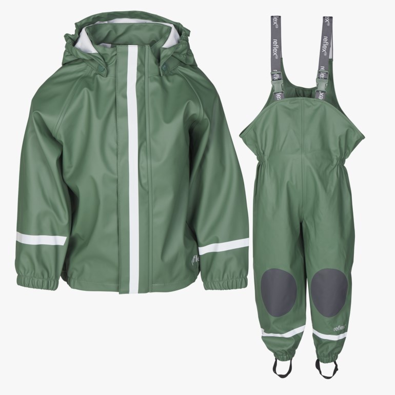 Mykt og behagelig PU-regnsett med backing av resirkulert materiale, sveisede sømmer og rikelig med reflekser. Tekstilet har en vannsøyle på min 14.000 mm og alle sømmer er sveiset.