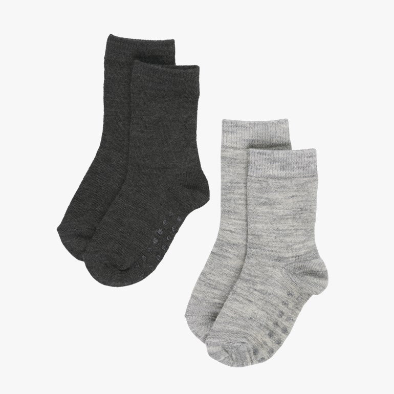 Topakning med antisklisokker i ull for de minste. Myk og middels lett ullkvalitet.
