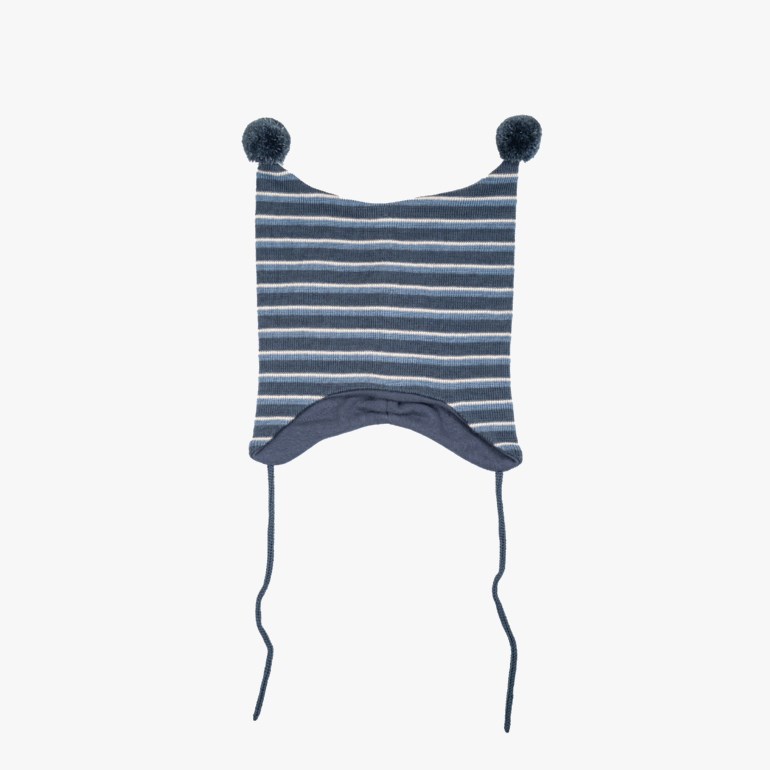 Stripete lue i behagelig ullblanding med innvendig jerseyfôr i bomull og vindstopper for ørene. De reflekterende trådene i duskene sørger for ekstra god synlighet.