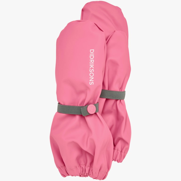 Vottens lengde beskytter mot vann og snø. PU-belagt stoff med mykt trikotunderlag. Vanntette Galon®-votter med mykt og lunt fleecefôr. Vottene er helt vind- og vanntette for å holde små hender varme og tørre i allslags vær. De er lette å ta på og av, og rundt håndleddet er det et elastisk bånd med trykknapp som holder vottene på plass.