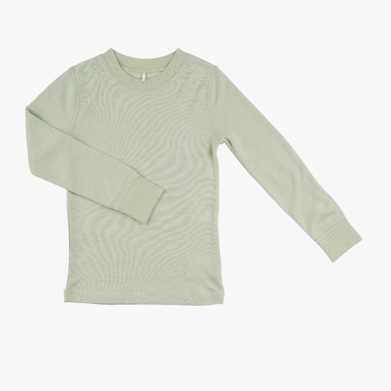 Ensfarget, langermet trøye med bambusviskose på innsiden og RWS-sertifisert merinoull på utsiden. Denne kombinasjonen av naturmaterialer beskytter sensitiv og tørr hud mot irritasjon samtidig som man får godt utbytte av ullens gode egenskaper. Kombinerer ullens fantastiske egenskaper med bambusviskosens myke og behagelige komfort. Gir barn med sensitiv og/eller tørr hud, godt utbytte av ullens lune egenskaper samtidig som bambusviskose beskytter huden mot irritasjon. Alle plaggets detaljer som vender inn mot barnets hud, er bambusviskose. Transporterer bort fuktighet og tørker hurtig. Produktet er Økotex-sertifisert og uten skadelige fargestoffer eller allergifremkallende kjemikalier. Produktet er RWS-sertifisert. Dette sikrer både bærekraftig produksjon gjennom hele verdikjeden og at ullen er mulesing-fri. Str. 86-92 cm 1,5-2 år - 134-140 cm 9-10 år. Materiale: 50% merinoull, 45% bambusviskose, 5% polyamid. Vaskeanvisning: Maskinvask 30 grader, ullprogram. For å ivareta både plagget og miljøet så godt som mulig, anbefaler vi å minimere antall vask så mye man kan. Vask gjerne av flekker med en klut og heng plagget til lufting når nødvendig. Dette vil forlenge levetiden på plagget, minimere energibruk samt skåne miljøet for unødvendig utslipp.