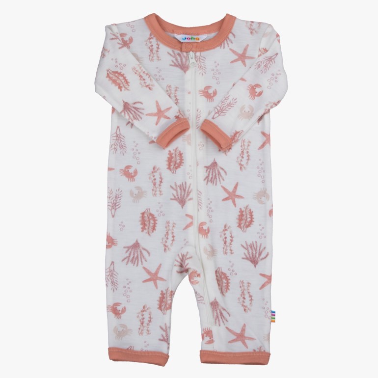 Heldress med glidelås i deilig myk og elastisk kvalitet i merinoull. Spesielt egnet for svært sensitiv hud. Trykk med søtt motiv og kontrasterende kanter. Ren merinoull og Oeko-tex 100 etikett.