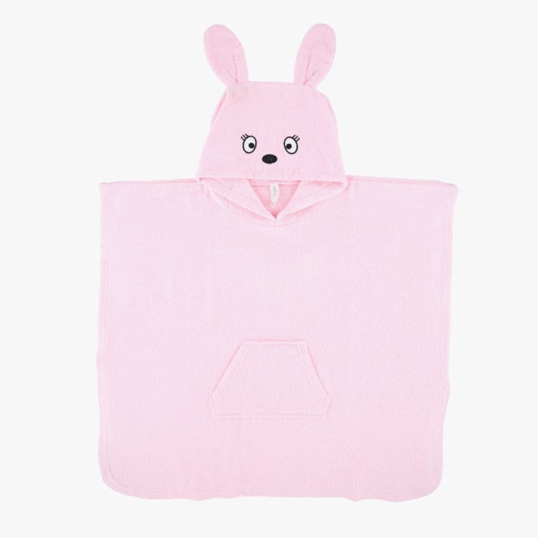 Flott badeponcho med hette og lomme i front. Produsert i 100% bomulls-frottè som tørker kroppen raskt og effektivt, og er myk og god å tulle seg inn i etter et bad. Ypperlig til bruk både på reise og hjemme. Leveres i rosa og grå. Str One Size.Materiale: 100% bomull