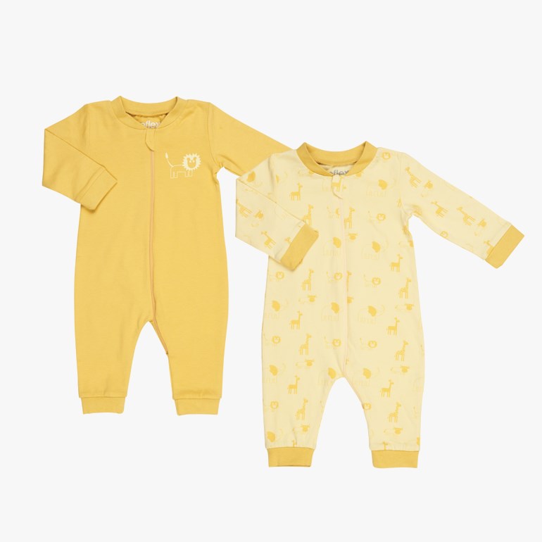 Åpning med glidelås i front og ned i ene foten for enkel av- og påkledning Produktene er Økotex- og GOTS-sertifisert Pakkene består av forskjellige ensfarget og mønstret design Str. 56 cm 1 mnd – 98 cm 2 år Materiale: 100% økologisk bomull Vaskeanvisning: Maskinvask 30 grader