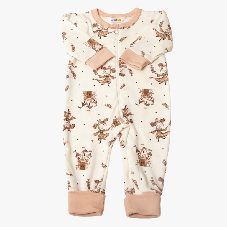 Nattkjole med 2 i 1 fot. Lukkes med trykknapp og glidelås som går ned på det ene benet for enklere påkledning. Virkelig en myk og elastisk økologisk bomullskvalitet som er veldig behagelig å ha på. Søt trykk. Glitter og kontrastfargede kanter. Øko-tex 100 etikett.