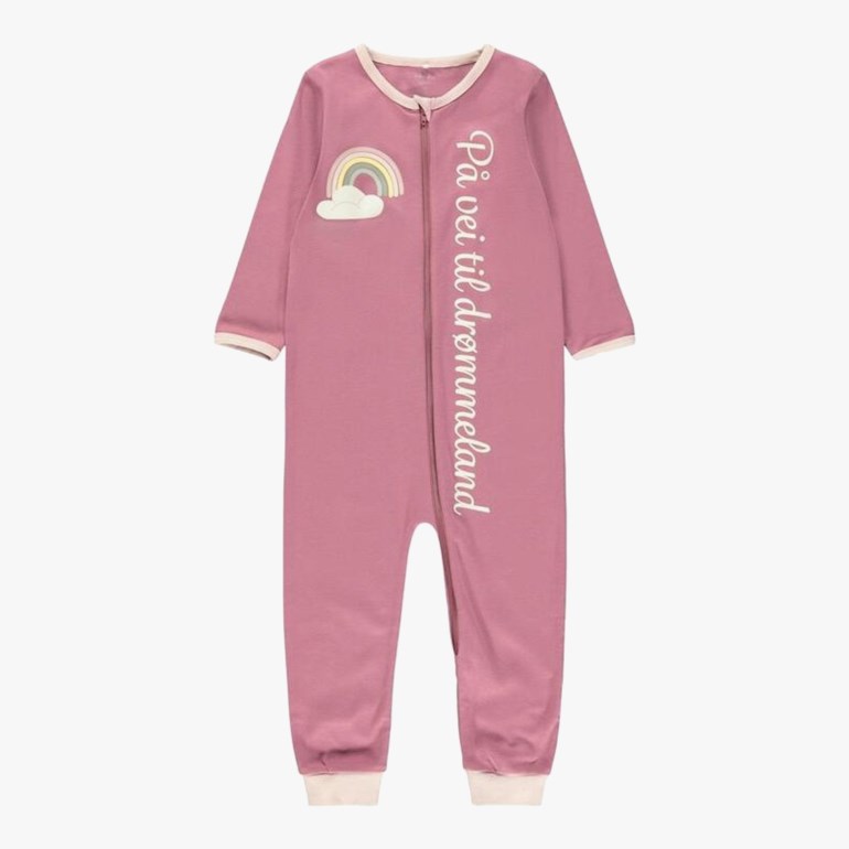 Kjempesøt pysjamas fra Name it. Glidelås for enkel av- og påkledning. Føtter opp til str 86. Materiale: 100% Bomull