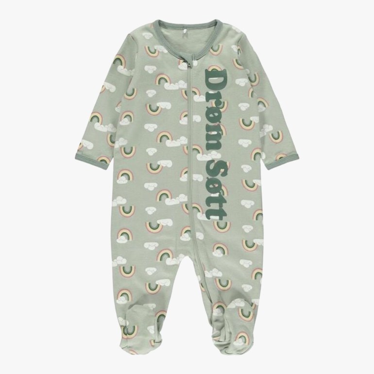 Kjempesøt pysjamas fra Name it. Glidelås for enkel av- og påkledning. Føtter opp til str 86. Materiale: 100% Bomull