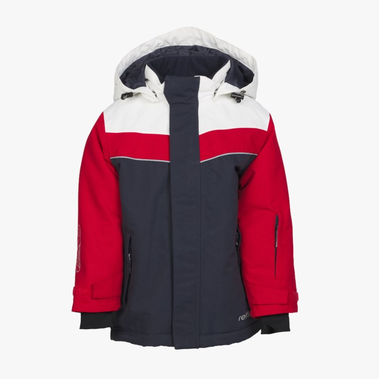 Klassisk, trefarget, vinterjakke laget av resirkulert materiale. Jakken er vanntett, vindtett og har ekstra god isoleringsevne. Pustende tekstil med hele 18.000 mm vannsøyle. Tapede sømmer og rikelig med reflekser. Jakken er perfekt både i skibakken og til lek.