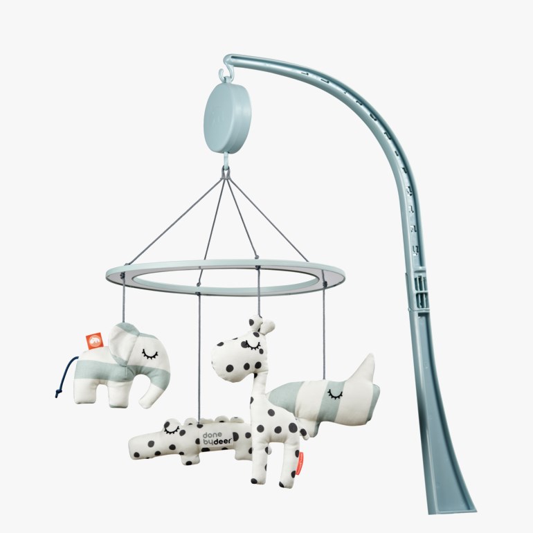 Den medfølgende holderen gjør det enkelt å feste uroen til senger eller lekegrinder.
