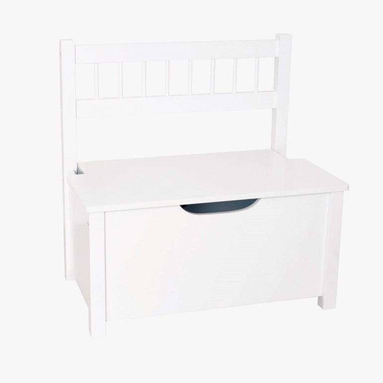 Oppbevaringsbenk i tre fra Jabadabado som passer like godt i gangen som på barnerommet. Benken har oppbevaringsplass under seteplaten som kan romme både leker og luer og votter.