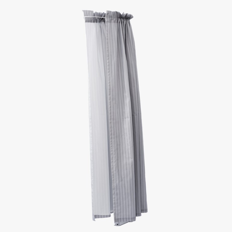 Vuggehimmel i 100 prosent bomull. Pinstripe. Str 140x220. Kanal i toppen for oppheng. Vaskes v/ 60 gr. Bør ikke vaskes sammen med frotte pga nupping. Lufttørking er bedre enn tørketrommel. Himmelstativ kjøpes utenom.