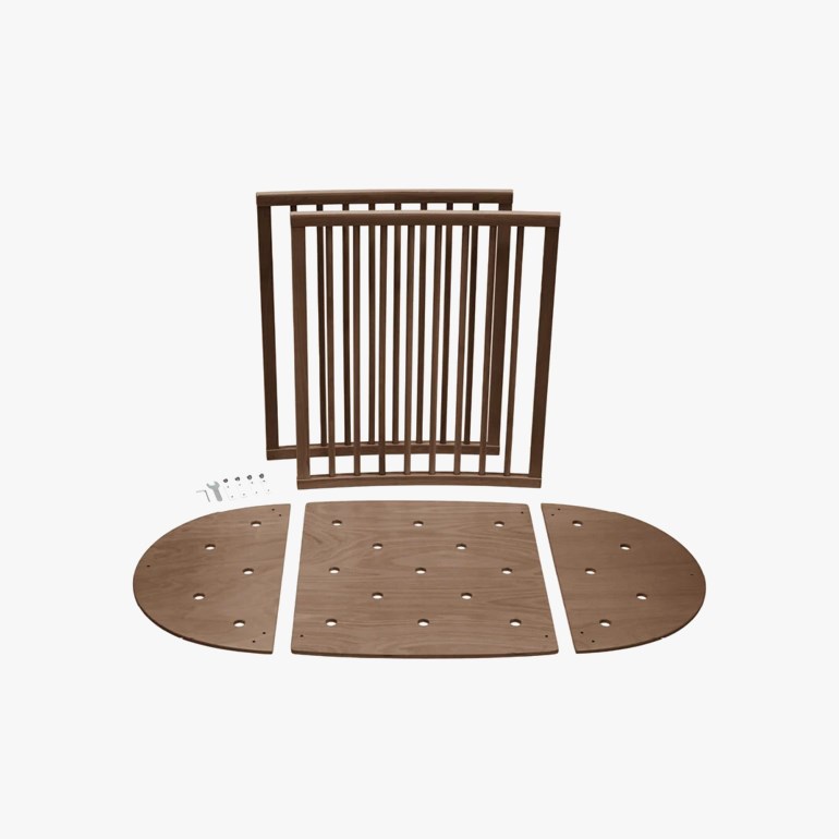 Laget av solid bøk for lang holdbarhet, sikrer utvidelsessettet både kvalitet og funksjonalitet. Madrass og tilbehør selges separat, og utvidelsessettet er kun kompatibelt med Stokke® Sleepi™ Mini V3.