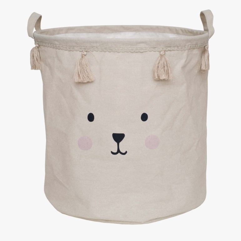 Hold orden på barnerommet med denne praktiske oppbevaringskurven i tekstil fra Jabadabado. Kurven kan brukes til leker, klær og andre større ting og er fin for de små å flytte på selv da den er lett i vekt. Rund, kommer med håndtak og er dekorert med søte dusker med glitterdetalj.