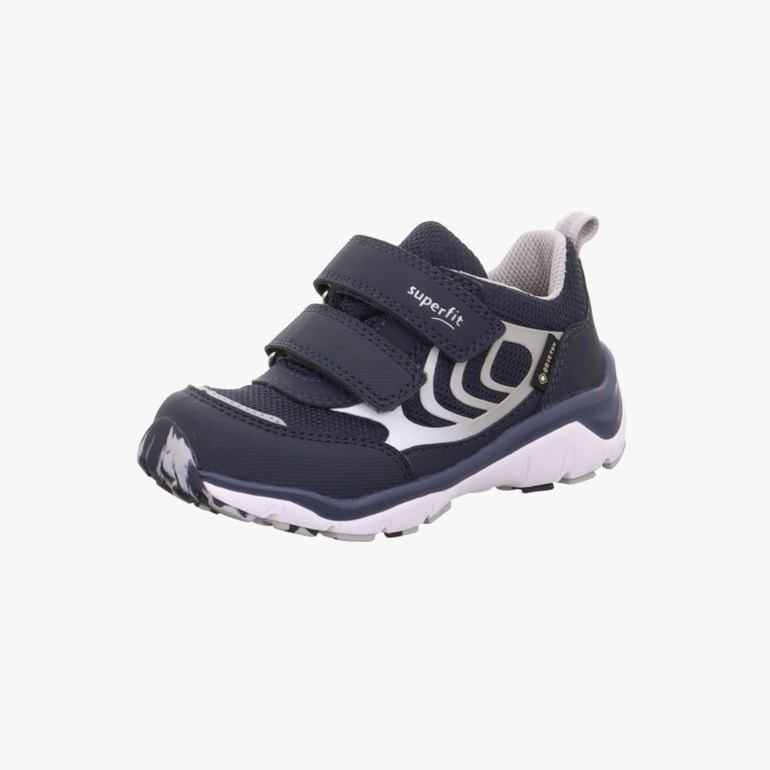 Sport5 overgangssko med to borrelåser og GoreTex fra SuperFit. Skoene kommer med en kombinasjon av funksjonelt syntetisk skinn og slitesterkt tekstil, som dette til en allsidig sko. Sålen er superlett og fleksibel, og GoreTexen holder barnas føtter tørre og ved en behagelig temperatur uansett vær.