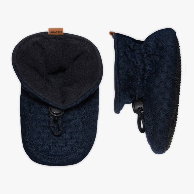 Myke tekstiltøfler fra MELTON som gir barnet god komfort og full bevegelsesfrihet. Overdelen har en strukturert overflate og er laget i en slitesterk blanding av polyester og bomull. Innsiden er fôret med myk fleece som føles lun og behagelig mot foten.