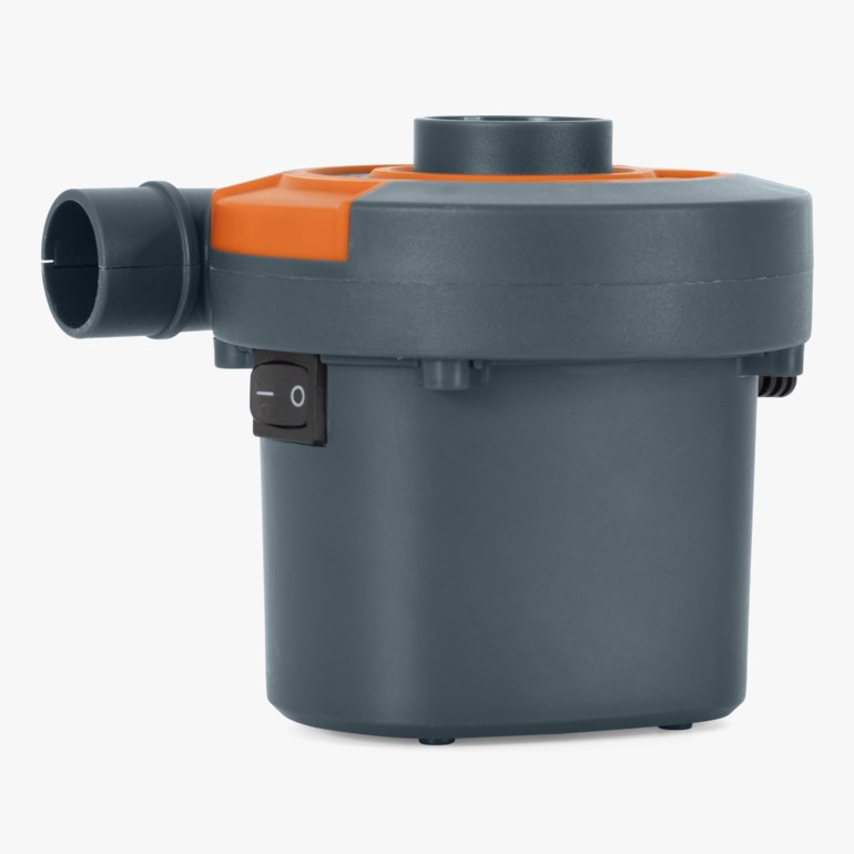 Elektrisk pumpe fra Bestway med ventiler i tre størrelser. Kan blåse opp badebasseng, gummibåter og mindre, oppblåsbare leker.