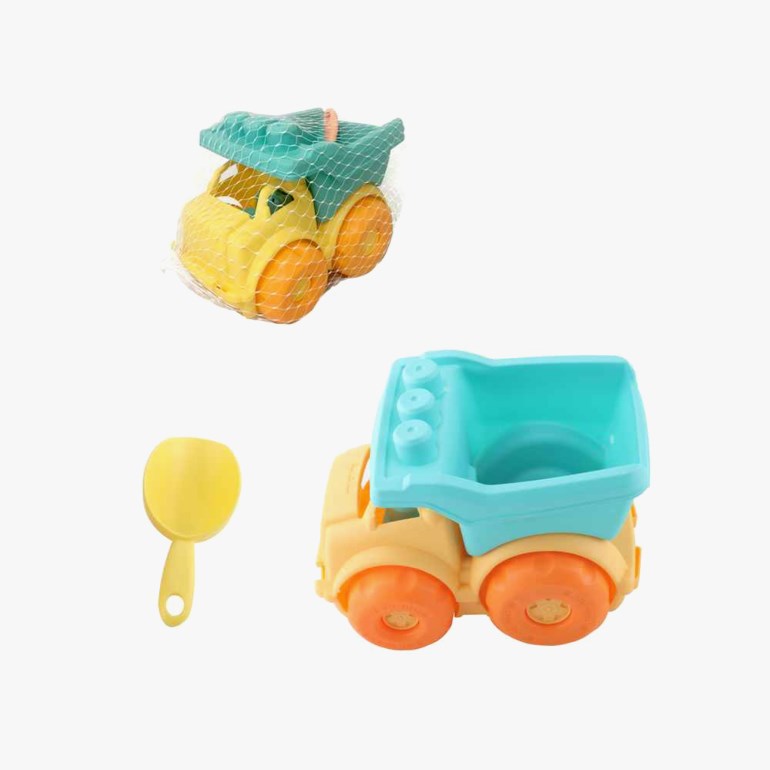 Lastebil med spade i myk plast. Perfekt i sandkassen eller for en dag på stranden!