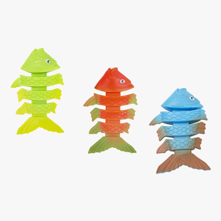 Dykkefisker i tre forskjellige farger. Slipp dem i vannet og se dem svømme nedover med samme bevegelser som en ekte fisk. Passer for barn over 3 år.