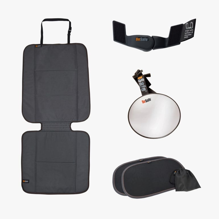 Denne pakken inneholder alt du trenger for å gjøre kjøreturen mer komfortabel og sikker for barnet, samtidig som den beskytter bilens interiør.