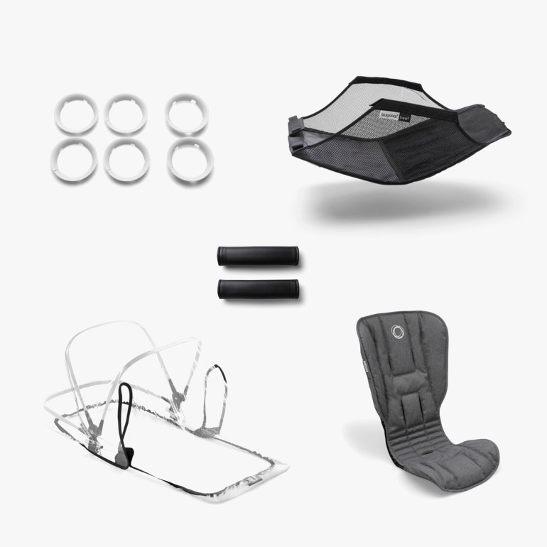Gjør din Bugaboo Bee 5 komplett med de tilhørende tekstilene i style settet. NB! Kalesje (sun canopy) kjøpes separat. Innhold: - Sittedelstekstil. - Grips (håndtak). - Hjulkapsler. - Handlekurv. - Regntrekk.