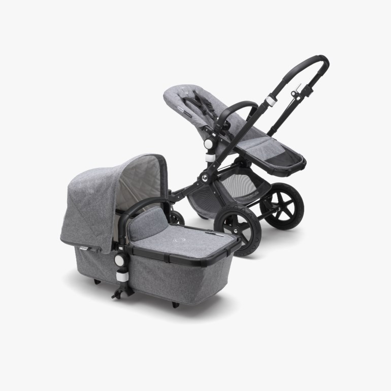 Bugaboo har oppdatert sin Classic kolleksjon og har utviklet Cameleon3 Classic+. Kolleksjonen er originalt inspirert av Bugaboo Frog fra 2001, hvor blant annet det quiltede foret først ble introdusert. Nå kommer denne kolleksjonen med en leather-look på håndtaket, samt på bærebøylen og introduserer også den nye fargen Grey Melange. Cameleon3 er en moderne 3-i-ett barnevogn som kan kombineres med bag og bilstol og kan derfor brukes fra fødsel. Cameleon3 har høydejusterbart håndtak og svingbare framhjul som kan låses. Den har stor handlekurv under bagen/sittedelen. Denne strammes med strikk i overkant slik at innholdet holder seg godt på plass. Dersom man skal ha med seg mye, så åpner man strikken maksimalt, og kurven blir veldig romslig. Regntrekk er inkludert og kalesjen er stor og god. Sittedelen har en helt spesiell ergonomisk utforming og vippes enkelt i ønsket sitteposisjon med en stor "knapp" på hver side av rammen. Hele sittedelen vippes da. Det er altså ingen endring i vinkelen på fotbrett for eksempel. Sittedelen har en buet fasong, og det gjør at hodet hele tiden har en stabil posisjon, barnet slipper at hodet tipper til siden. Vognen har 5-punkts sele. Rammen på vognen kan enkelt klikkes av for å endre kjøreretning på sittedelen/bagen slik at barnet er vendt mot eller fra den som triller. Det som er genialt med Cameleon3 er at dette enkelt kan gjøres mens barnet er i vognen. Dette er genialt dersom solinnfallet i kalesjen blir sterkere for eksempel. Noen ganger er det spennende for barnet å sitte og se ut mot verden, og når han og eller hun sovner er det veldig koselig å kunne snu sittedelen og se på sitt søte, sovende barn! Håndtaket på vognen kan også vippes over slik at man kan variere med å små hjul foran eller bak. Vognen er 59 cm bred. Størrelse sammenslått er: 85 x 35 x 58 cm. Vognen kan brukes i en 2-hjulsposisjon for snø og sand (som en tralle). Setet kan tiltes i 3 posisjoner. Cameleon3 kan brukes med adaptere til flere forskjellige babybilstoler, blant annet Maxi-Cosi Cabriofix og Pebble og Britax Baby-Safe. Adapterne kjøpes separat. Alle tekstiler er vaskbart. Vekt med ramme, hjul og sete er 9,6 kg. Lengde sete/hardbag ramme: 90 cm. De små hjulene kan erstattes med store vinterhjul som kan kjøpes som ekstrautstyr. Å slå opp understellet har aldri vært enklere. Det som blant annet skiller Cameleon3 fra de tidligere modellene er at bærehåndtaket på bagen/sittedelen er roterende. Det vil si at det kan åpnes på den ene siden og vendes til siden når du skal legge barnet ned i vognen og ta det ut. Bagen har såkalt en såkalt flat-fold løsning. Det vil si at ved å løsne på kun 4 borrelåser så kan bagen klappes helt sammen, slik at den bli helt flat - superpraktisk i for eksempel en fullpakket feriebil eller dersom dere har en liten bil. En flat bag er også enklere å lagre til neste barn. Bagen til Cameleon3 er noe større enn de tidligere Cameleon-utgavene. Vognen er utstyrt med quick-release hjul som er enkle å ta av (praktisk i en liten bil), et bremsesystem som er enkelt i bruk og polstret justerbar 5-punktssele. Bugaboo Cameleon3 er egnet for både nyfødte eller smårollinger, og det er den eneste barnevognen du - og barnet - noen gang vil trenge.