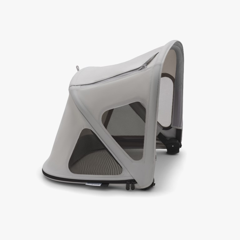 Bugaboo Breezy sommerkalesje kan forlenges og har innfelte nettingpartier i mesh-materiale for optimal luftgjennomstrømning. Et perfekt tilbehør for varme dager, med innebygd myggnetting og kikkeluke. Stoffet som er brukt reflekterer solstrålene og gir en beskyttelse mot solen på SPF 50+, samtidig som den tynne nettingen lar en sval bris slippe i gjennom.