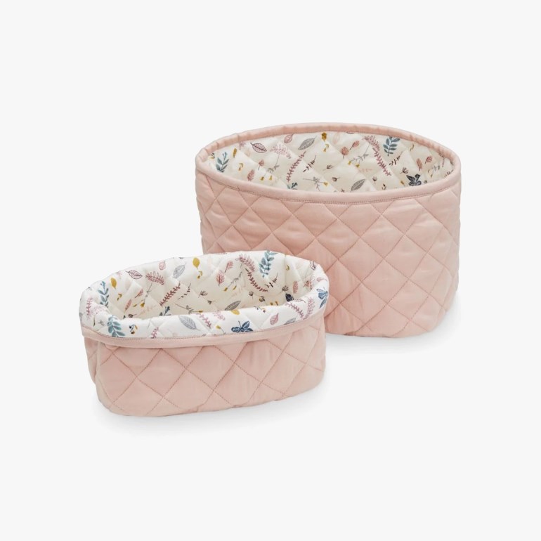 Fine, quiltede opbevaringskurver fra Cam Cam Copenhagen, praktiske til organisering på stellebordet, på barneværelse eller på badet. Kurvene er laget i OCS-sertifisert, økologisk bomull og er på grunn av quiltet faste og holder formen. Nydelig blomsterprint gjør de til et fint element i rommet.