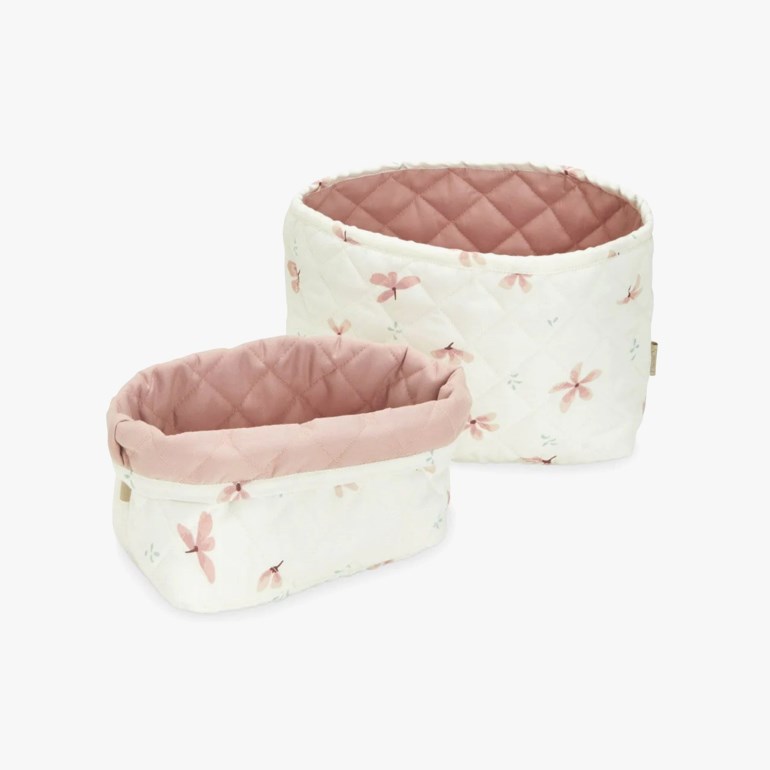 Fine, quiltede opbevaringskurver fra Cam Cam Copenhagen, praktiske til organisering på stellebordet, på barneværelse eller på badet. Kurvene er laget i OCS-sertifisert, økologisk bomull og er på grunn av quiltet faste og holder formen. Nydelig blomsterprint gjør de til et fint element i rommet.