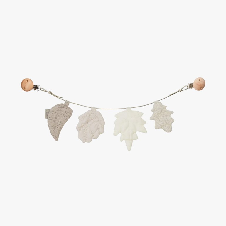 Dekorativ lenke til barnevogn fra Cam Cam Copenhagen. Lenken er dekorert med søte blader laget i 100% økologisk bomull, og med påsydde detaljer. Bladene kommer i ulike fargenyanser som passer godt sammen og som blir et blikkfang for babyen. Fest lenken på vognens kalesje ved hjelp av klypene i tre og nikkelfritt metall.