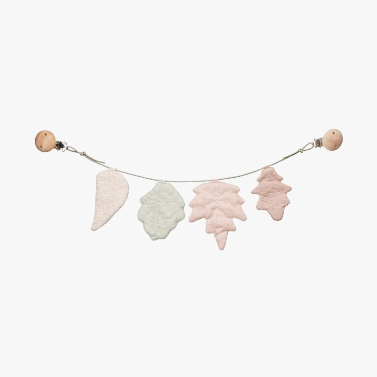 Dekorativ lenke til barnevogn fra Cam Cam Copenhagen. Lenken er dekorert med søte blader laget i 100% økologisk bomull, og med påsydde detaljer. Bladene kommer i ulike fargenyanser som passer godt sammen og som blir et blikkfang for babyen. Fest lenken på vognens kalesje ved hjelp av klypene i tre og nikkelfritt metall.