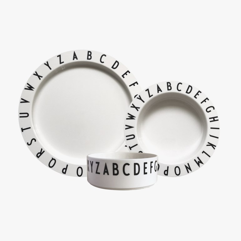 Et komplett startersett med tallerkener i to størrelser og en skål til barn. Alle delene er pakket i en gaveeske som gjør settet perfekt som gave til dåp eller fødselsdag. Tallerkener og skål er dekorert med bokstaver fra a-z - spis og lær bokstavene på samme tid!