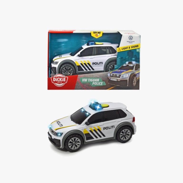 Den norske versjonen av Volkswagen Tiguan R-Line politibil er designet med et øye for detaljer i henhold til originalen. Gå i full fart og ta kriminelle, og med et trykk på en knapp vil lekebilen skape autentiske lys- og lydeffekter. VW Tiguan R-Line politibil fra Dickie Toys Toys har frihjul og er laget i skala 1:18.