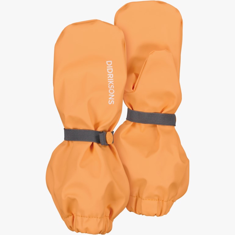 Vanntette Galon® votter med mykt og koselig fleecefôr. Vottene er helt vind- og vanntette for å holde små hender varme og tørre i all slags vær. De er lette å ta av og på, og det er et strikk med trykknapp rundt håndleddet slik at hanskene blir liggende.