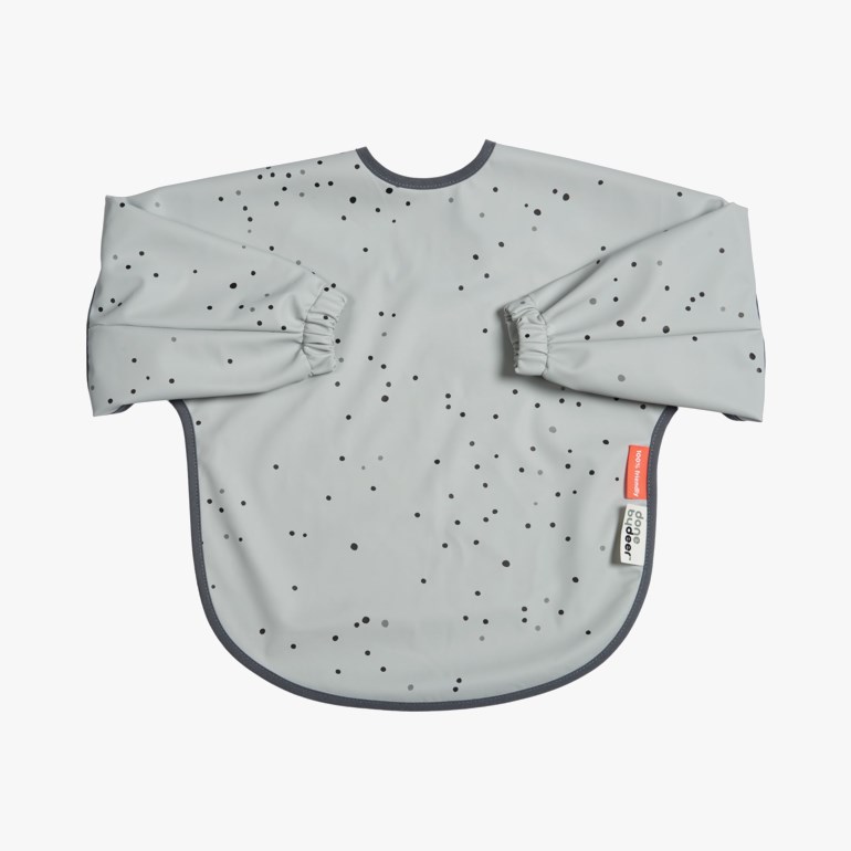 Dreamy Dots smekken er vanntett med praktiske elastiske ermer og borrelås-lukking. - Vanntett. - Elastiske ermer. - Borrelås-lukking. - Enkel å tørke ren. - OEKO-TEX®. - Kan maskinvaskes på 30°C. - Kan ikke tromles. - Materiale: 100% polyester. - Størrelse: Lengde front: 35 cm. Ermevidde: 72 cm.