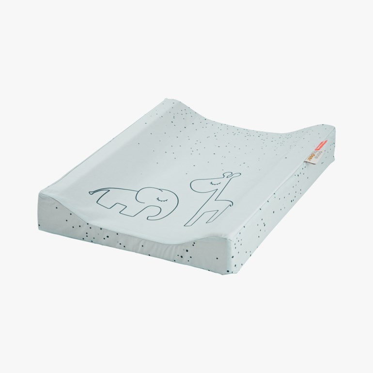 Dette stelleunderlaget er det perfekte stedet for bleieskift, med sine myke, hevede kanter og polstrede design som gir babyen en trygg og behagelig plass. Underlaget har en myk Oeko-tex-belegg som gjør det vannavvisende og enkelt å tørke av etter bruk. Mønstret med søte Dreamy dots og vennene Elphee og Raffi, gjør det bleieskiftet til en koselig opplevelse.