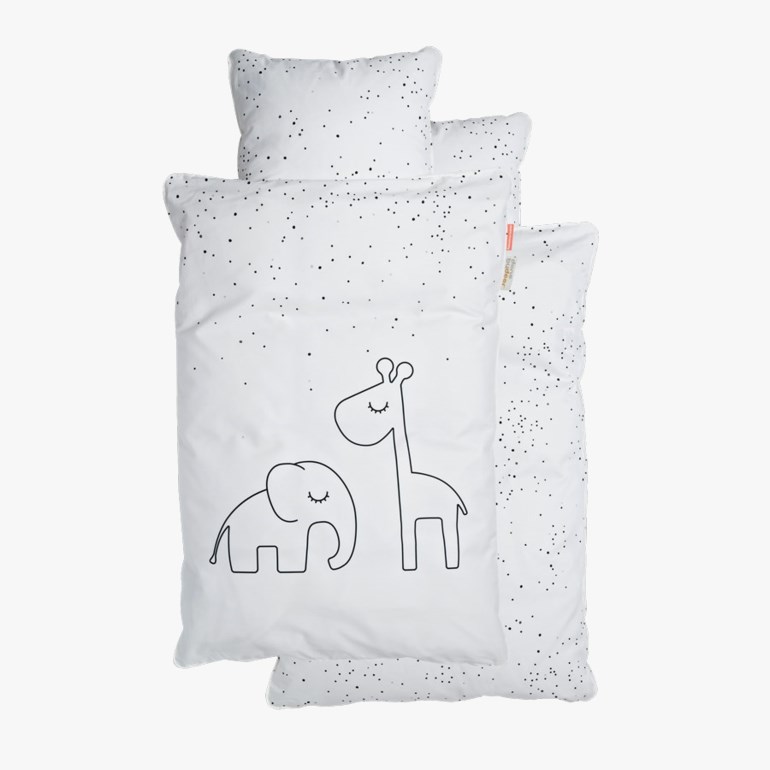 Et lekkert sengesett med elefanten Elphee og Done by Deers Happy dots-design - Glidelåslukking i bunnen. - Materiale: 100% myk bomull. - Øko-Tex sertifisert. - Kommer i en praktisk og fin tøypose. - Kan maskinvaskes på 60 grader. - Mål: dynetrekk 100x140 cm /putetrekk 40×60 cm.