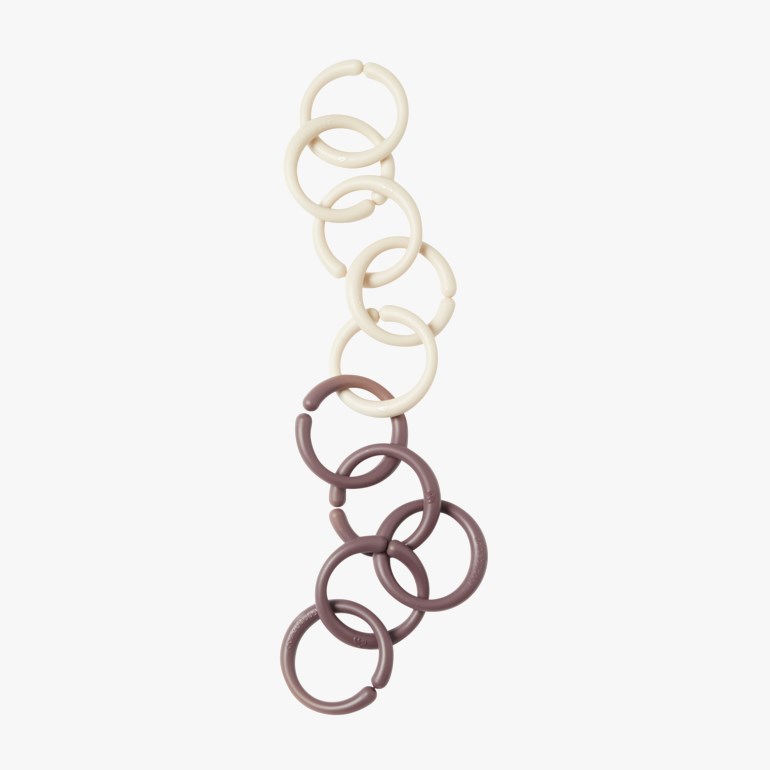 Bruk lekeringer for å sikre leker til seng, vogn eller bilstol eller lenk de sammen til en praktisk leke som barnet ditt kan gripe. - Sett med 10 stk lekeringer. - Kommer i både lyse og mørke fargetoner. - Materiale: 100% PP. - Kan vaskes på 40°. - Mål: 6 cm.tbd