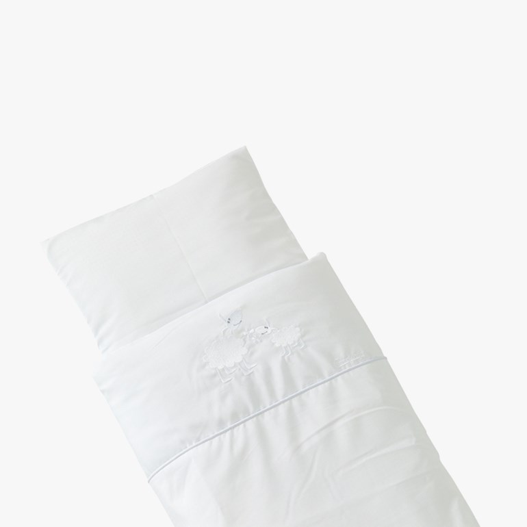 Dette bokssettet inneholder alt du trenger for å re opp i din bag - Myk dyne: 80x80 cm. - Myk pute: 35x 40 cm. - Putevar: 35x40 cm. - Dynetrekk: 80x80 cm. - Laken: 105x60 cm.