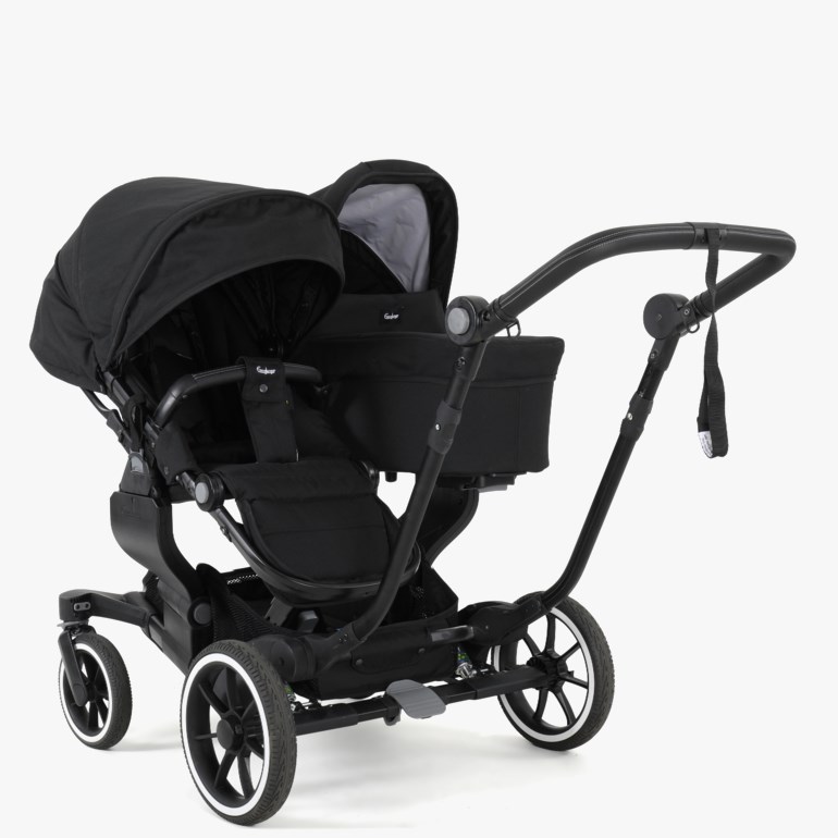 Med NXT TWIN CLASSIC får du god valuta for pengene. NXT TWIN CLASSIC leveres som en komplett løsning for tvillinger eller søsken: 1 NXT TWIN understell, 2 NXT Classic liggedeler og 2 lette ergonomiske seter. Samme høye kvalitet, men færre funksjoner og detaljer sammenlignet med SELECT-vogne. Bruk den myke og romslige NXT-liggedelen de første 6 månedene (opptil 9 kg). Senere klikker du på de lette og romslige ergonomiske setene (opptil 22 kg / 4 år).