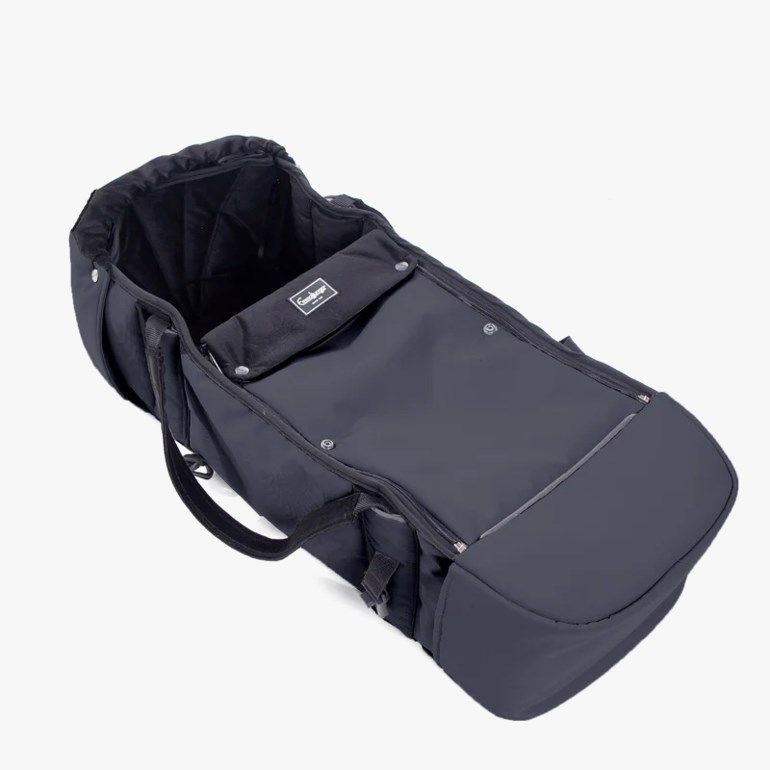 Med glidelåsåpning på begge sider får du rask og enkel tilgang til barnet, og det medfølgende forkleet gir god beskyttelse mot vind og vær. Bærehåndtakene gjør softliften enkel å løfte ut og inn av vognen – uten å vekke barnet.