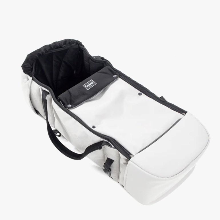 Med glidelåsåpning på begge sider får du rask og enkel tilgang til barnet, og det medfølgende forkleet gir god beskyttelse mot vind og vær. Bærehåndtakene gjør softliften enkel å løfte ut og inn av vognen – uten å vekke barnet.