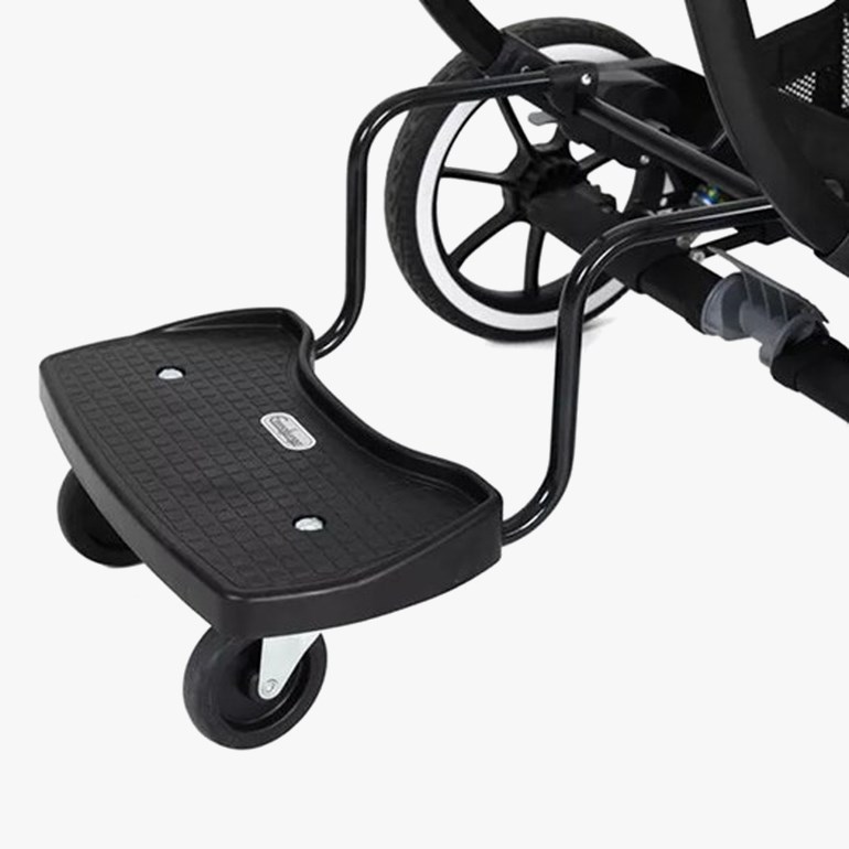 Med dette ståbrettet kan du enkelt transportere to barn samtidig. Det festes raskt til Emmaljunga tvillingvogn og gir eldre søsken en behagelig måte å hvile på under trilleturen. Når ståbrettet ikke er i bruk, kan det enkelt henges opp i styret for å gi mer plass til føttene.